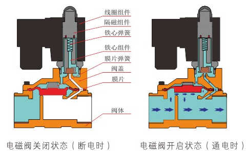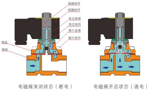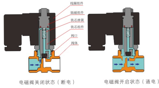 原理:乐动在线登录官网-乐动(中国)直动式电磁阀分常闭型和常开型两种。常闭型电磁阀断电时为关闭状态,线圈通电时产生电磁力,动铁芯跟静铁芯吸合,电磁阀阀口打开,介质(流体)通过;当电磁阀线圈断电时电磁阀消失,在弹簧的作用力下,电磁阀动铁芯复位,阀口关闭,介质(流体)不同,电磁阀呈关闭状态。常开型与之相反。